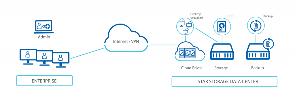 StarVault VDI (Virtual Desktop Infrastructure) is a workstation virtualization service (desktops / laptops) by migrating operating system images, applications and data to a centralized, cloud-based platform.
